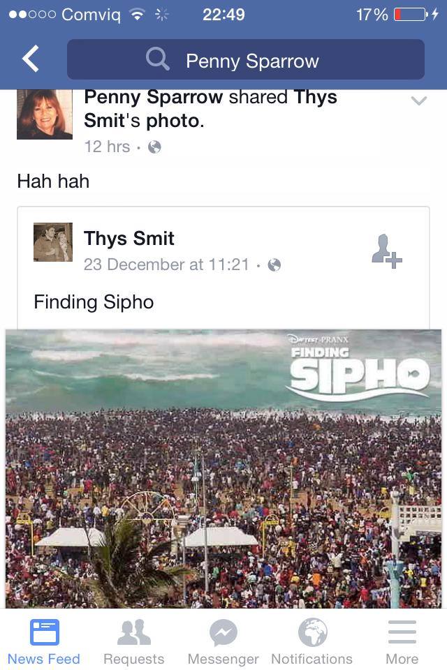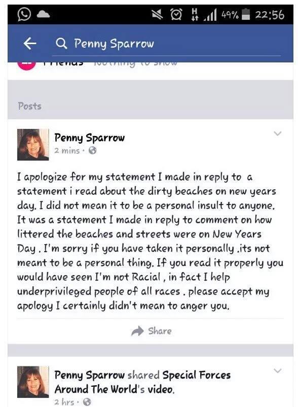 Despite the statement and apology posted by Penny sparrow she has continued to spread even more racist comments and post.