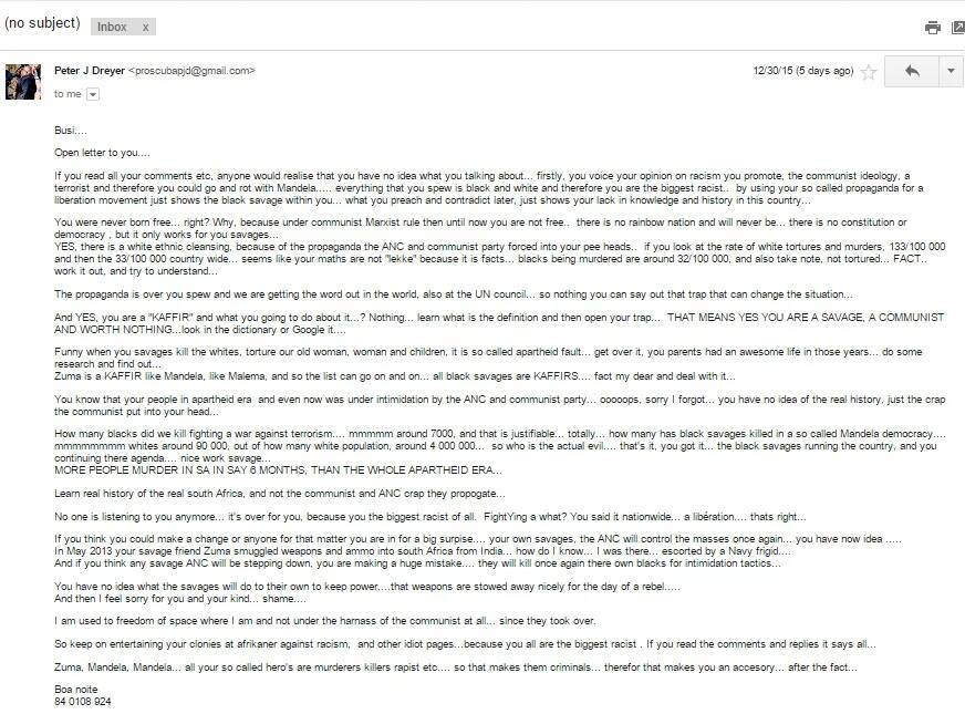 Considering the numbers of emails we received this morning, regarding the submission proposal to google to add cookie pillay to the list of extremely racist individual in South Africa.