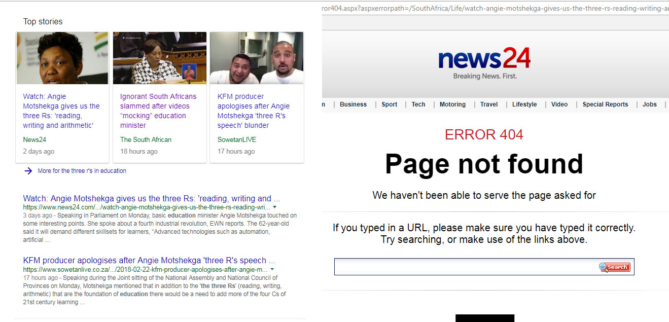 They were not the only ones that believed Minister Angie Motshekga made a mistake. An Article titled “Warch: Angie Motshekga gives us the three Rs: reading, writing and arithmetic” was also published on News24 regarding the wrong spelling of the three Rs but hours later and the article has been removed from the website.