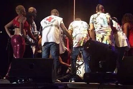 Video from the concert shows the artist, who was 66, slumped on the floor as dancers continue to perform, unaware of what is happening.