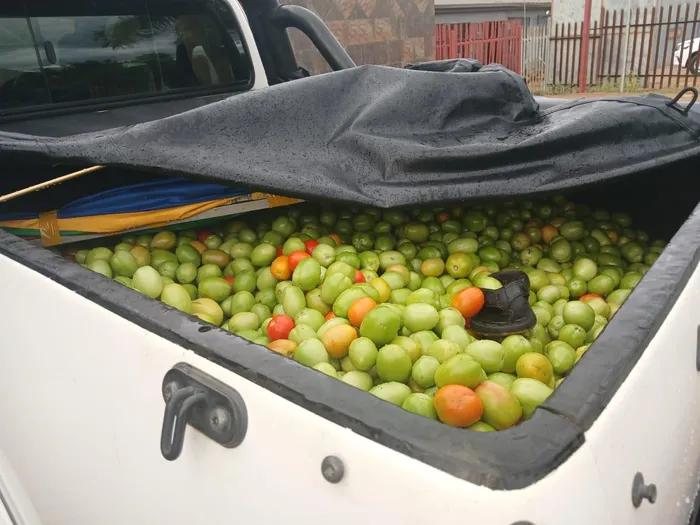 During the inspection, officers initially found crates of tomatoes loaded in the back of the vehicle. A closer search revealed several packages hidden underneath the produce.