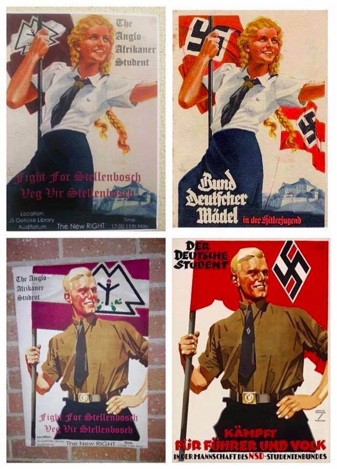 Stellenbosch University said the images, which copied Nazi youth movement posters without their swastika flags, contained “highly offensive references to Nazi propaganda and Neo-Nazism” and were in breach of the university’s policies on harassment and discrimination.